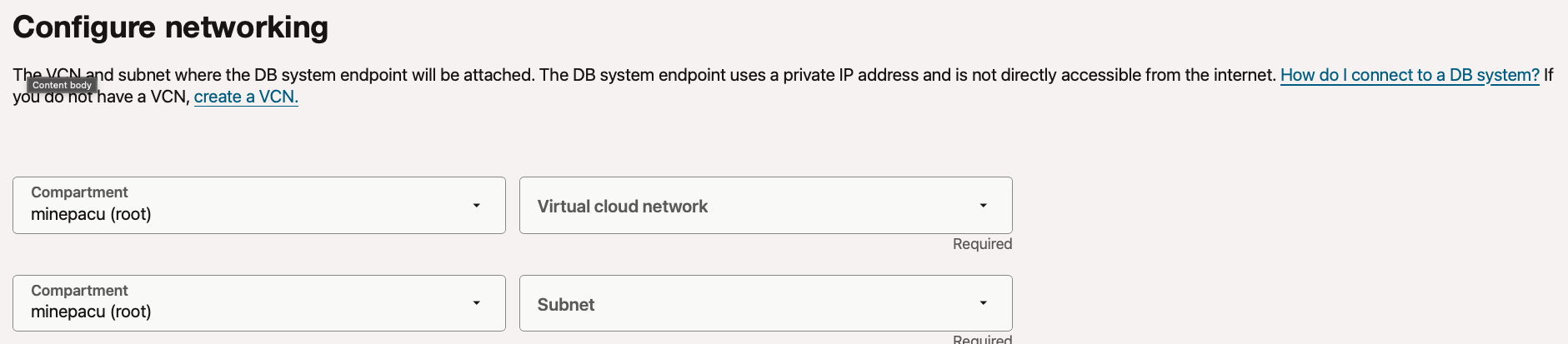 Always Free로 설정하면 DB 서버의 사양은 모두 고정된다.Create버튼을 눌러 DB System을 생성한다.