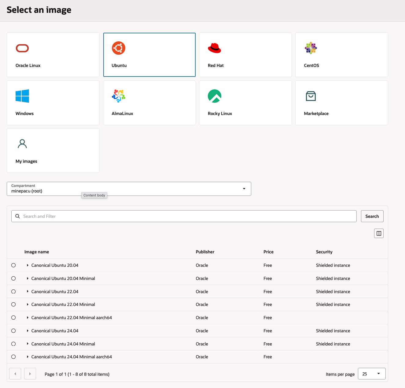 필자는 Canonical Ubuntu 24.04 를 선택했다. 선택하면 오른쪽 아래에 Select Image를 선택한다.