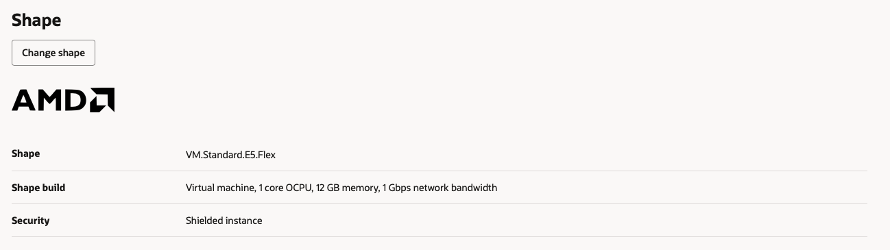 Shape Series 에서 Ampere를 선택하고, VM.Standard.A1.Flex 를 선택하고, 코어 수와 메모리 용량은 본인이 원하는만큼 선택한다. 선택을 완료하면 오른쪽 아래에 Select Shape를 선택한다.